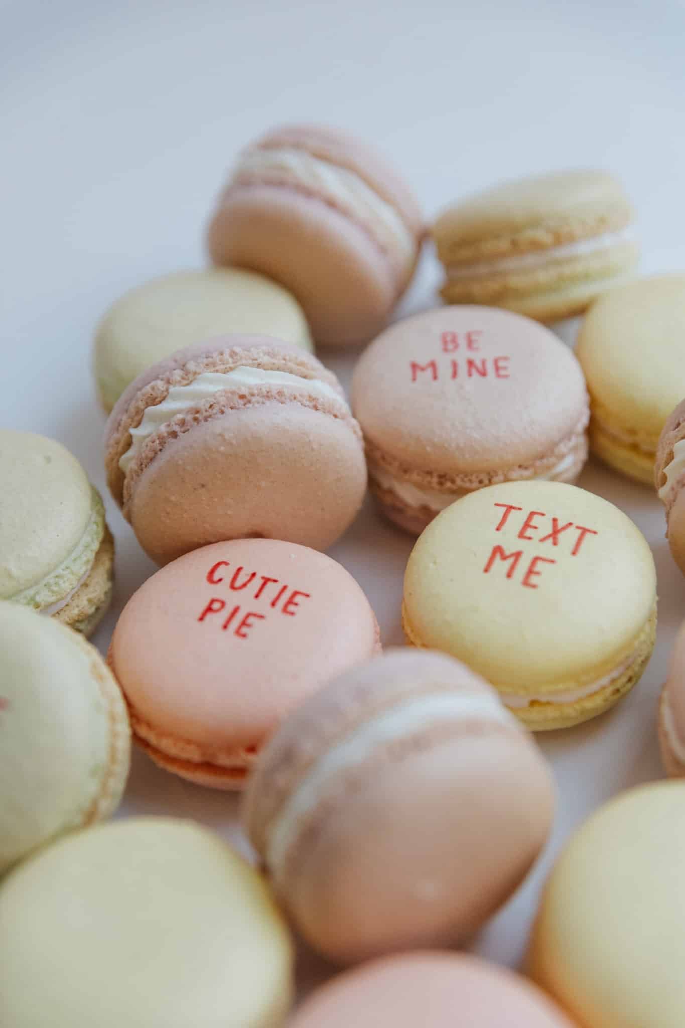This adorable box is a mixture of vanilla, almond, and strawberries & cream macarons- each with a different sweet message on them! These make the perfect gift for Valentine’s Day. Local Pickup is on 2/13.